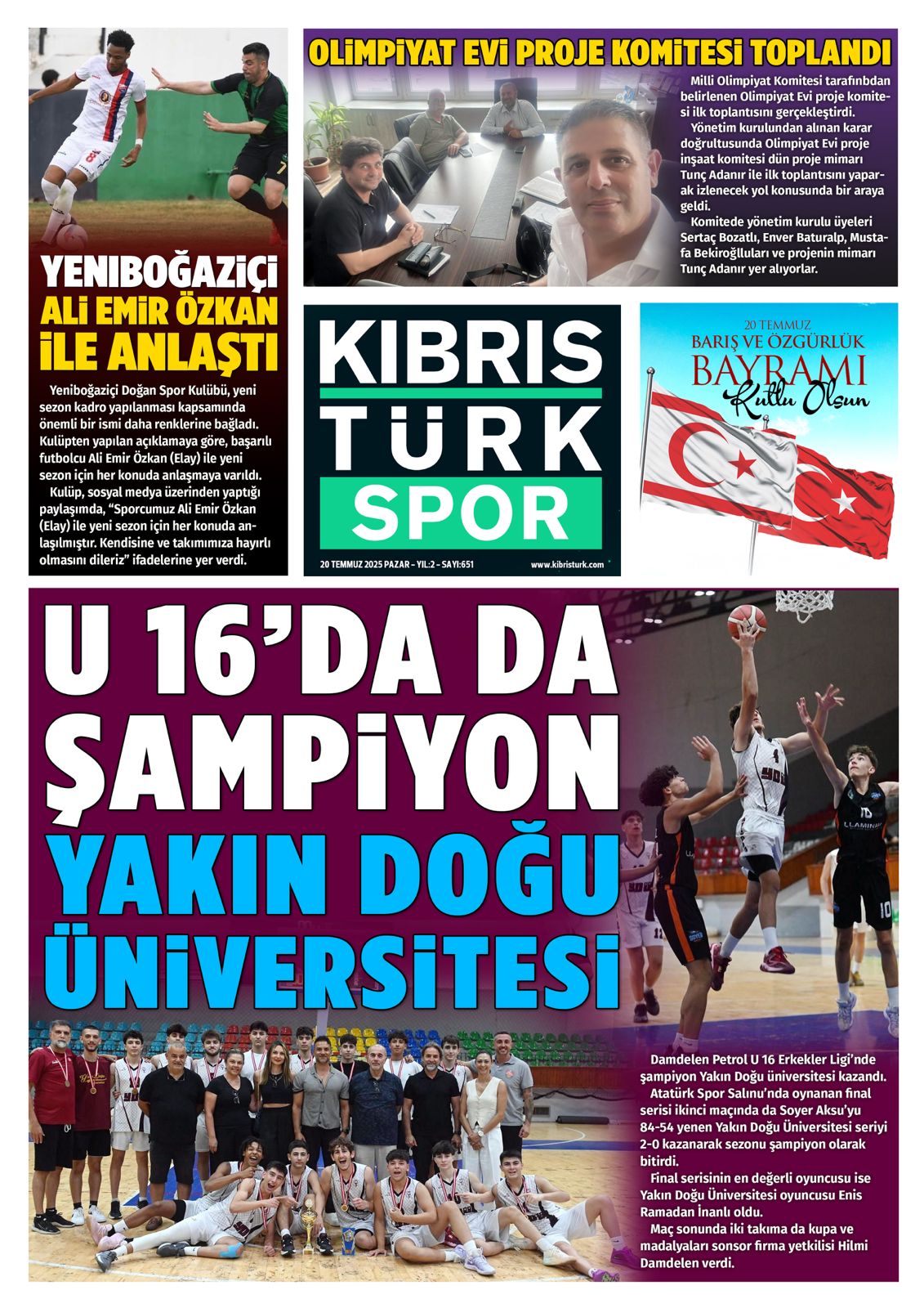 20 Temmuz 2025 KKTC Gazete Manşetleri