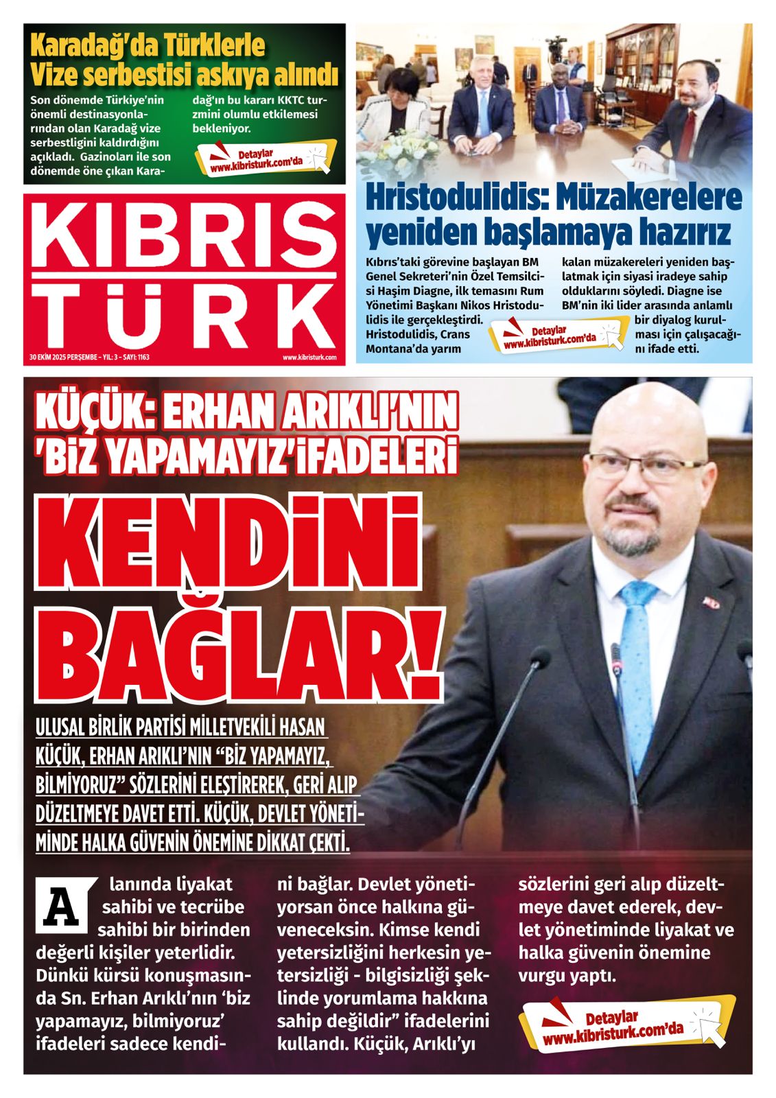 30 Ekim 2025 KKTC Gazete Manşetleri