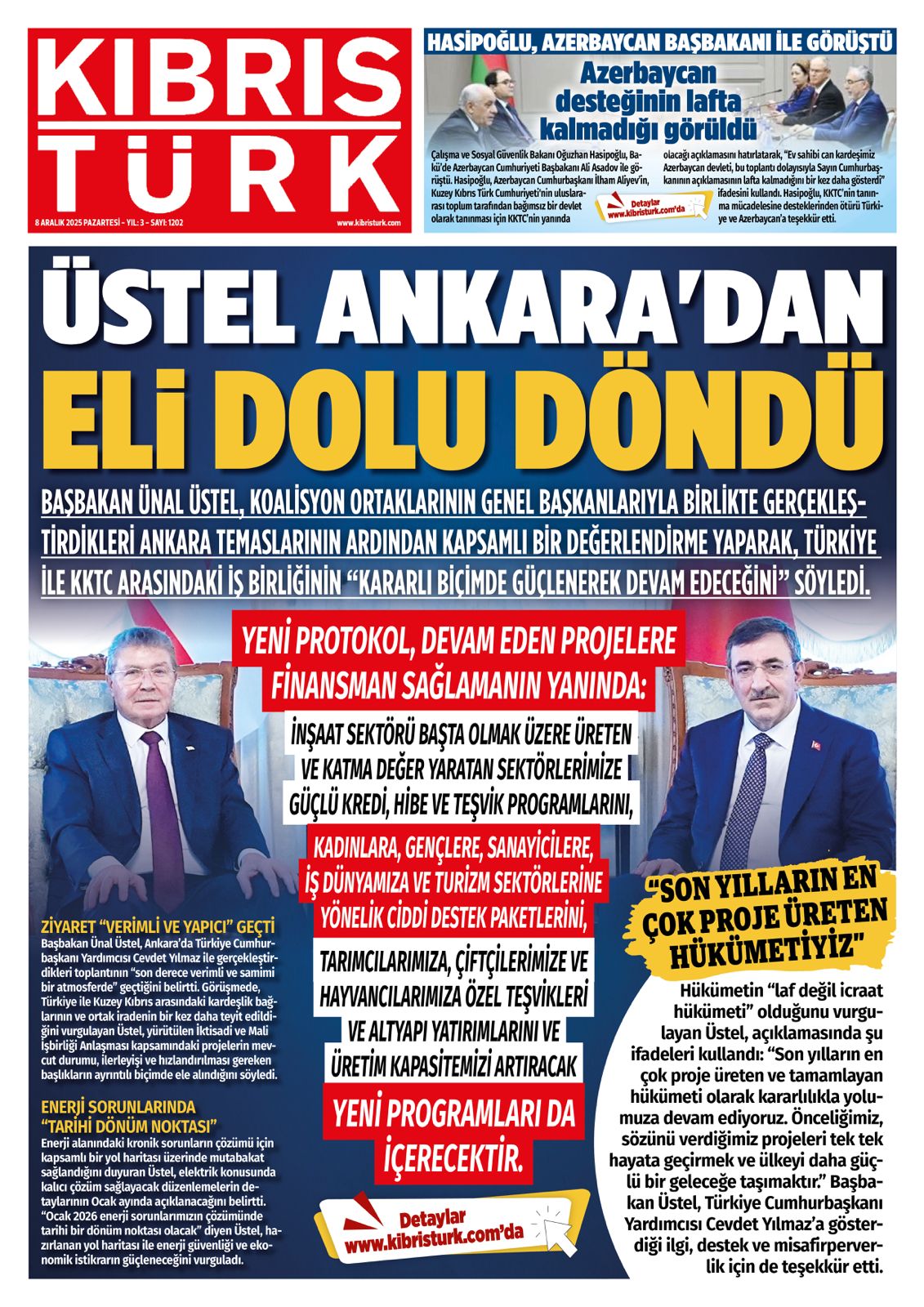 8 Aralık 2025 KKTC Gazete Manşetleri