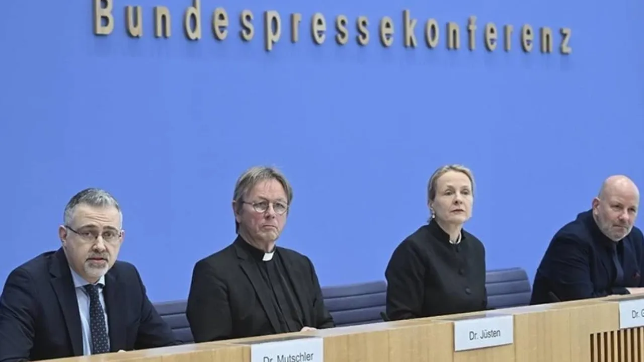 GKKE Eş Başkanları Karl Jüsten ve Anne Gidion, başkent Berlin’de "29. Silah İhracatı Raporu"na ilişkin basın toplantısı düzenledi.