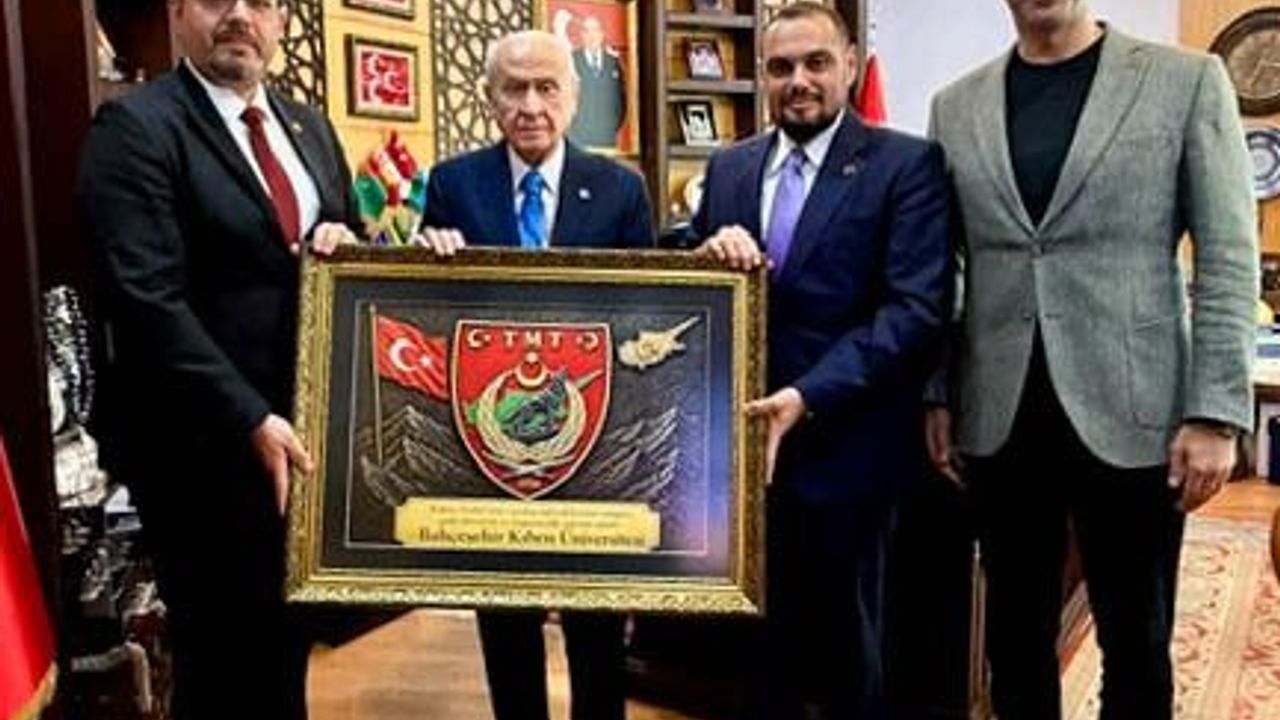 Bahçeşehir Kıbrıs Üniversitesi Rektörü Prof. Dr. Mehmet Toycan ile Bahçeşehir Kıbrıs Üniversitesi Mütevelli Heyeti Üyesi ve Osmanlar Vakfı Başkan Vekili Mert Osmanlar, Milliyetçi Hareket Partisi Genel Başkanı Devlet Bahçeli’yi makamında ziyaret etti.