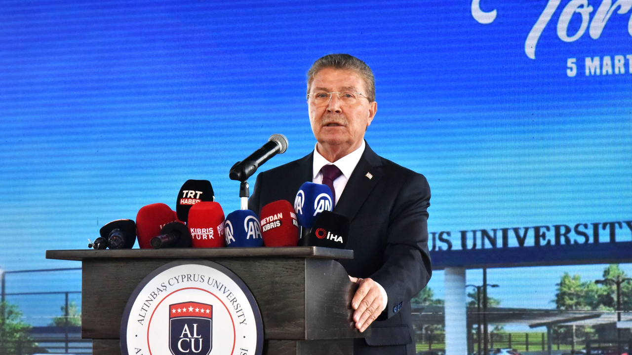 Üstel, Türkiye Cumhurbaşkanı Yardımcısı Cevdet Yılmaz’ın da katılımıyla gerçekleştirilen Altınbaş Kıbrıs Üniversitesi’nin Minareliköy’deki yeni kampüsünün temel atma töreninde konuştu.