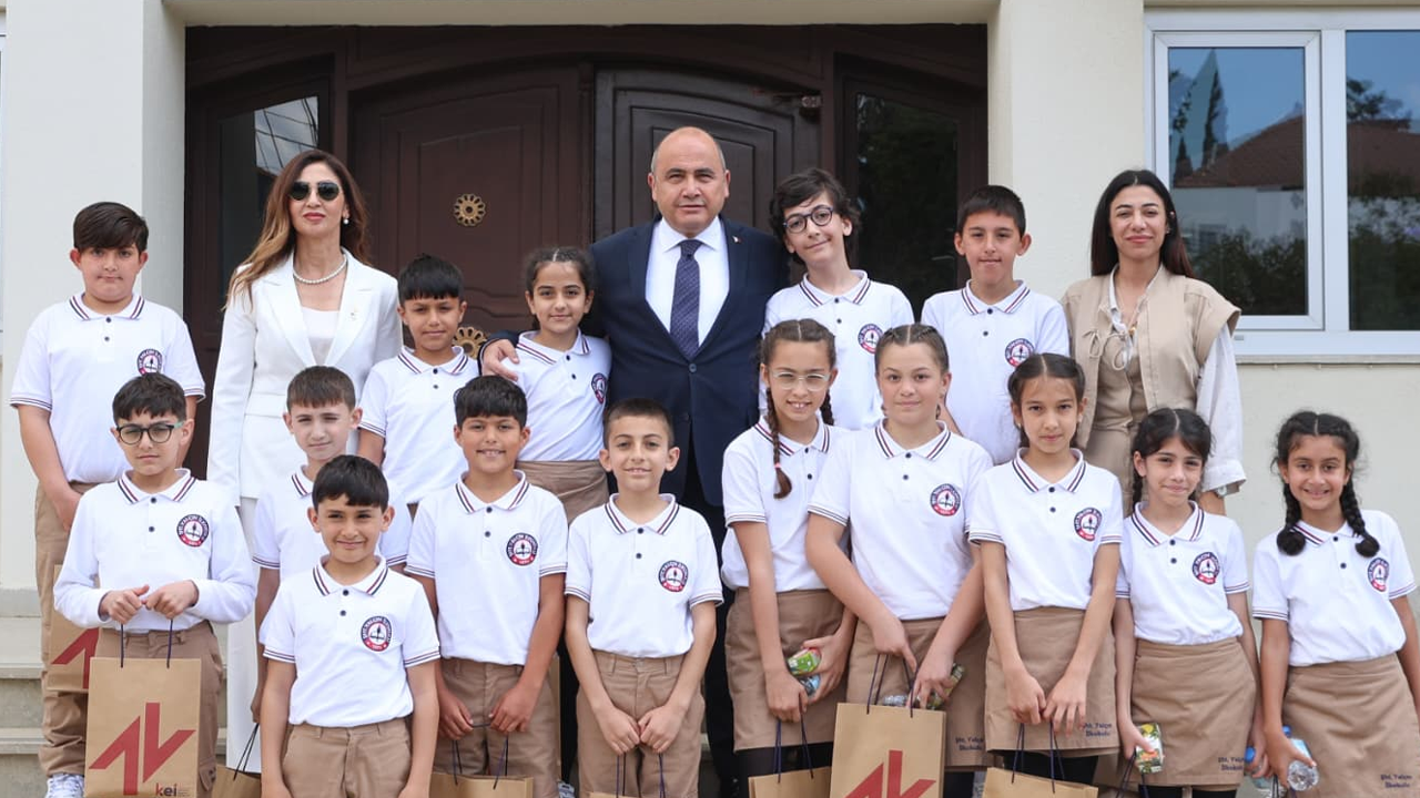 “Sizler, büyük Türk milletinin birer ferdisininiz.” diyen Başçeri, kendisini ziyaret eden çocukların gelecekte bu makamlarda oturabileceğini belirtti.