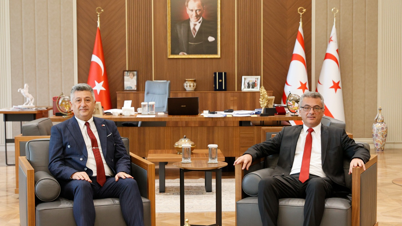 Sivil Savunma Teşkilatı Başkanı Hakan Balaban ise, Cumhurbaşkanı Erhürman’a görevinde başarılar dileyerek ziyaret anısına hediye takdim etti.