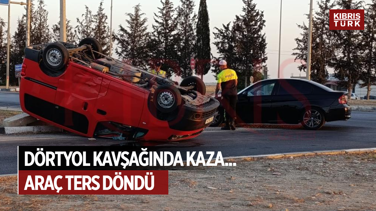Lefkoşa-Gazimağusa anayolunun Dörtyol kavşağında trafik kazası meydana geldi. Kazada bir araç çember içerisinde ters dönerek durdu.