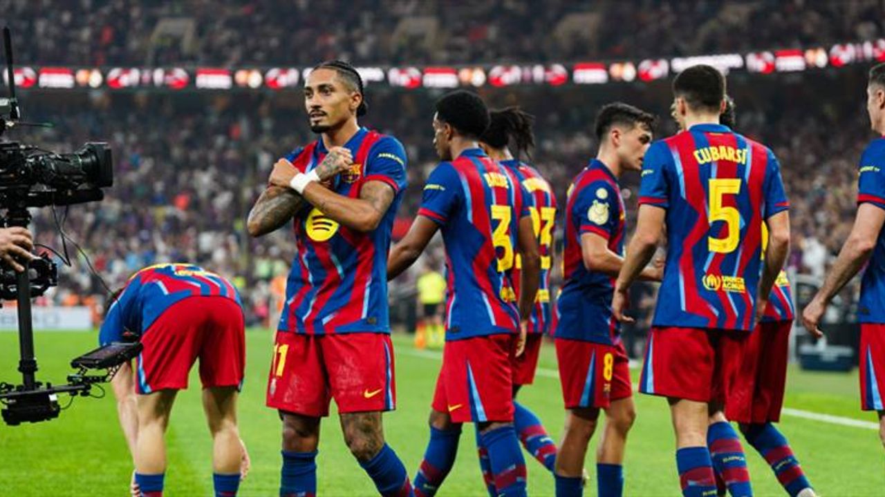 King Abdullah Sports City'de oynanan mücadelede Katalan ekibinin gollerini 36 ile 73. dakikalarda Raphinha ve 45+4'te Robert Lewandowski kaydetti.