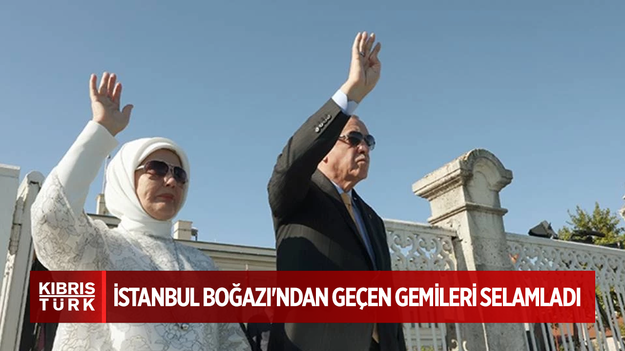 Çalışma ofisinin açık alanında gemileri seyreden Erdoğan, mürettebata ve tören vesilesiyle gemide bulunan vatandaşlara el salladı.