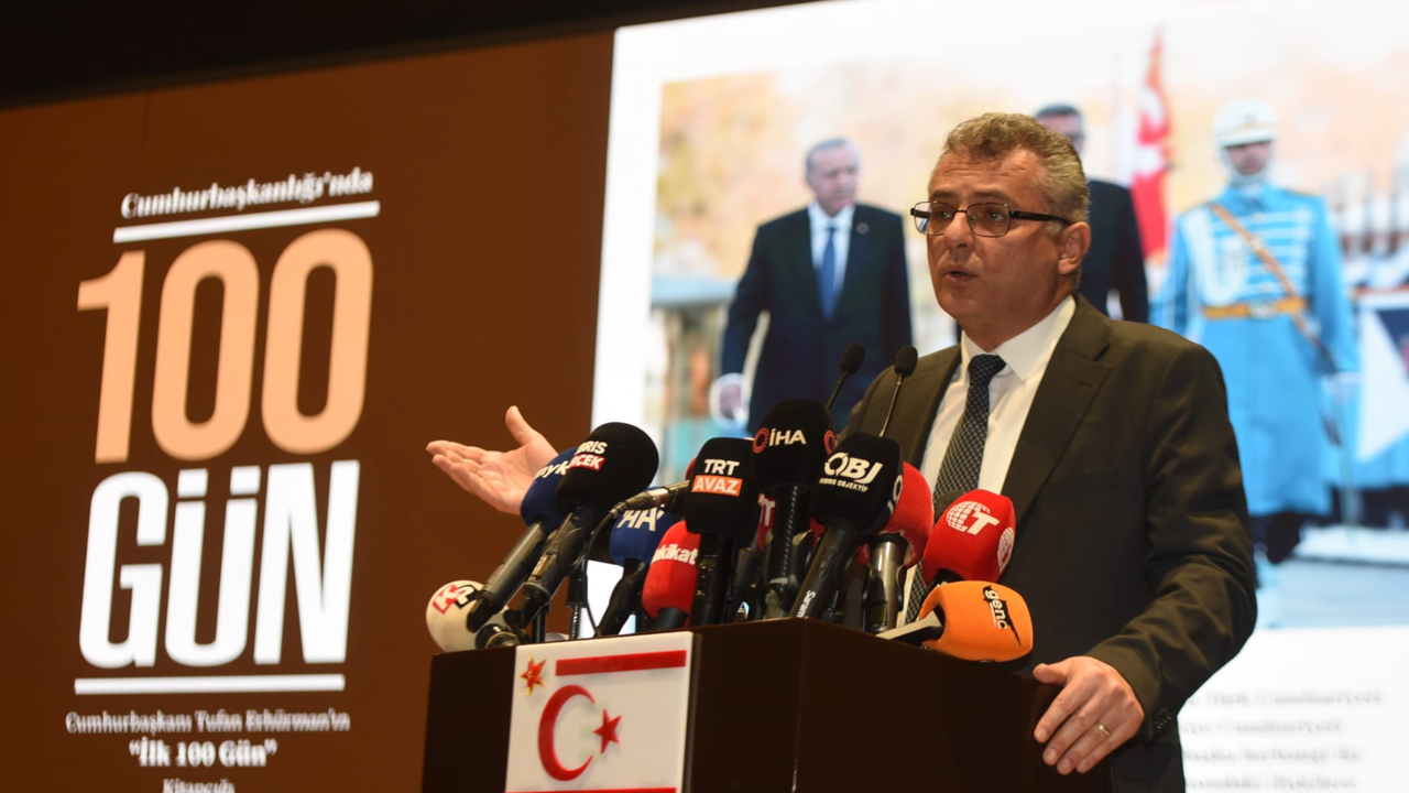 Cumhurbaşkanı Tufan Erhürman, Cumhurbaşkanlığı Beyaz Salon'da "Cumhurbaşkanlığı'nda 100 Gün" basın toplantısı düzenledi.