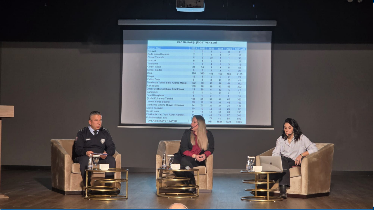 Sosyal Hizmetler Dairesi Memuru Sıla Murat, PGM Kadına Karşı Şiddete Müdahale Şube Amiri Müfettiş Mahmut Gümüşsoy, Avukat Sevilay Yıldırımer ile Kıbrıs Türk Gazeteciler Birliği Genel Sekreteri Canan Onurer; dijital ortamda artan şiddet, taciz ve siber zorbalık konularının sosyal, hukuki ve güvenlik boyutları ile ilgili sunumlarını gerçekleştirdi.