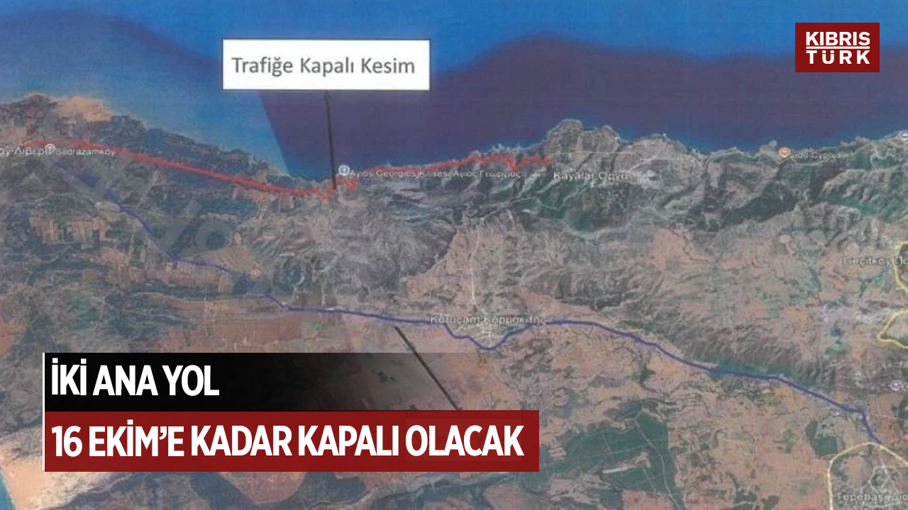Geçitköy-Lapta ayrımı ile Kayalar-Sadrazamköy yol güzergahı 16 Ekim’e kadar trafiğe kapalı olacak.