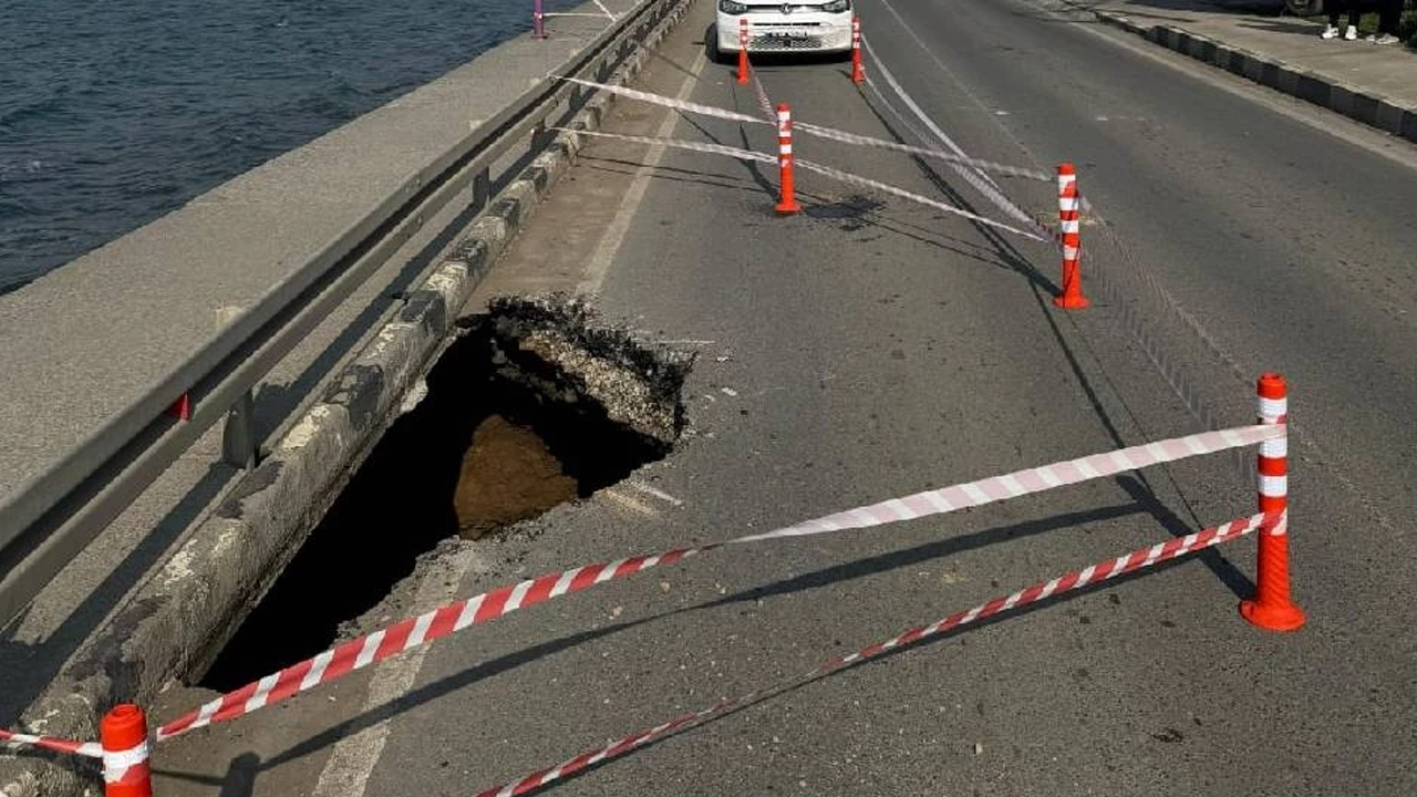Yapılan açıklamaya göre, Bağlıköy Kavşağı’nın yaklaşık 100 metre gerisinde, yolun deniz tarafında çökme oluştu.