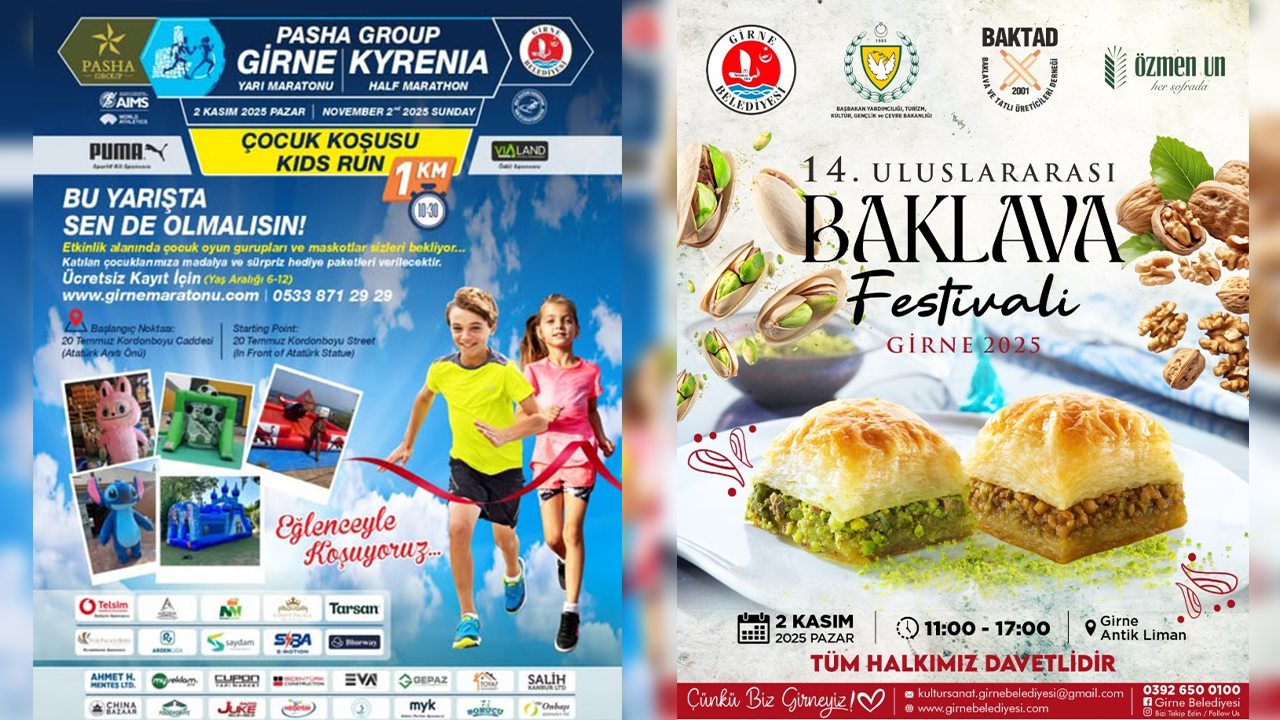 Girne Belediyesi’nden verilen bilgiye göre, Girne Belediyesi ve KKTC Atletizm Federasyonu iş birliğinde, Pasha Group ana sponsorluğunda bu yıl 6’ncısı düzenlenecek Pasha Group Girne Yarı Maratonu Girne Kordonboyu’nda, Baklava Festivali de Antik Liman’da yapılacak.