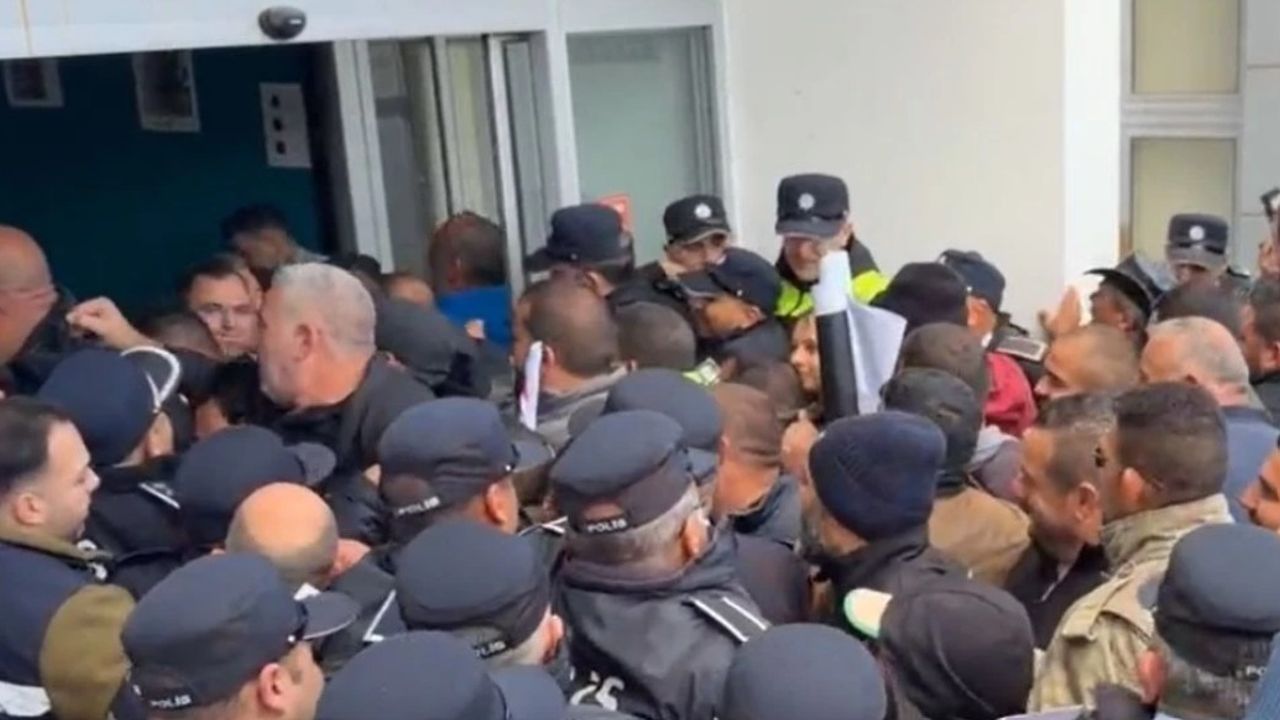 Açıklamalar sırasında “Hükümet istifa” ve “Hükümet gidecek” sloganları atıldı, Bakanlığa yumurta fırlatıldı.