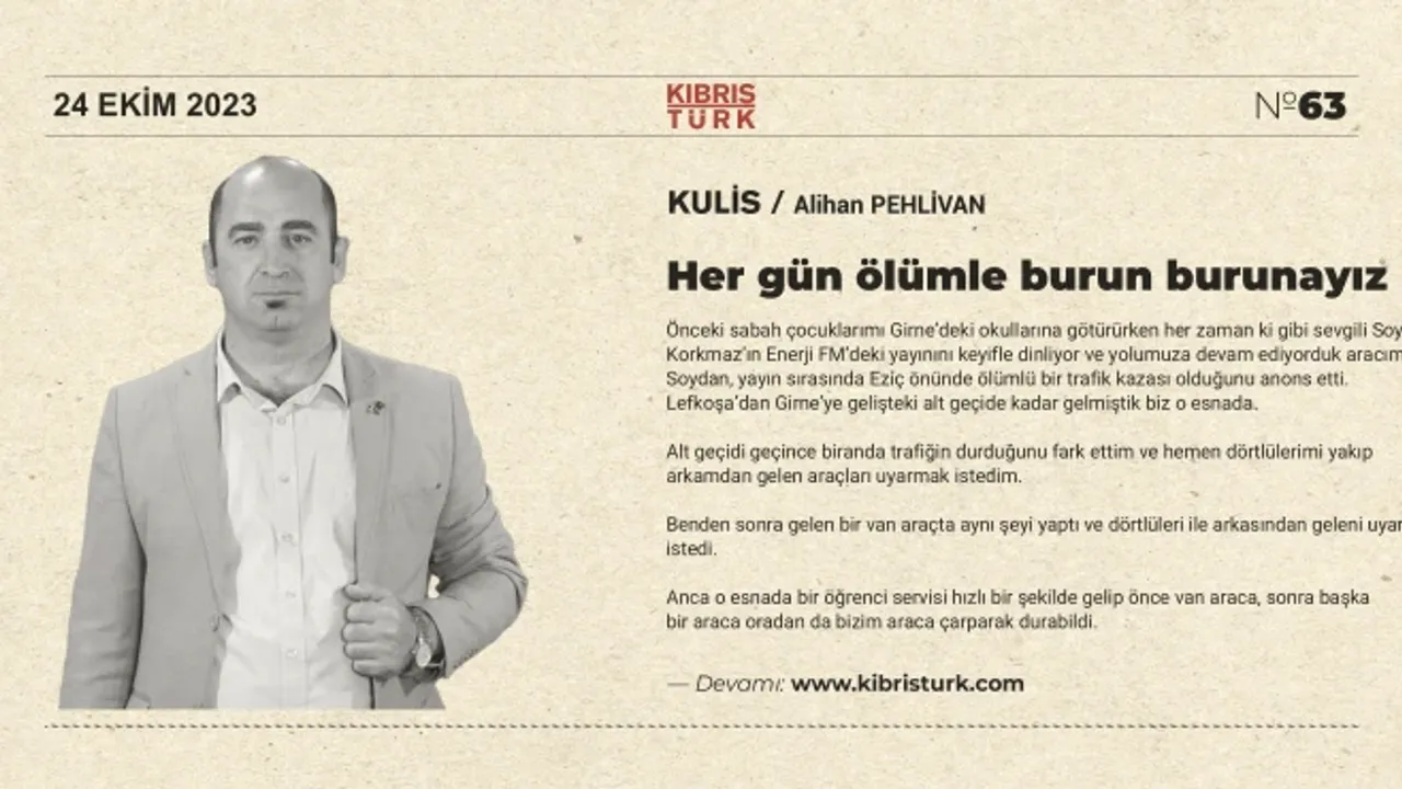 Önceki sabah çocuklarımı Girne’deki okullarına götürürken her zaman ki gibi sevgili Soydan Korkmaz’ın Enerji FM’deki yayınını keyifle dinliyor ve yolumuza devam ediyorduk aracımızda. Soydan, yayın sırasında Eziç önünde ölümlü bir trafik kazası olduğunu anons etti.