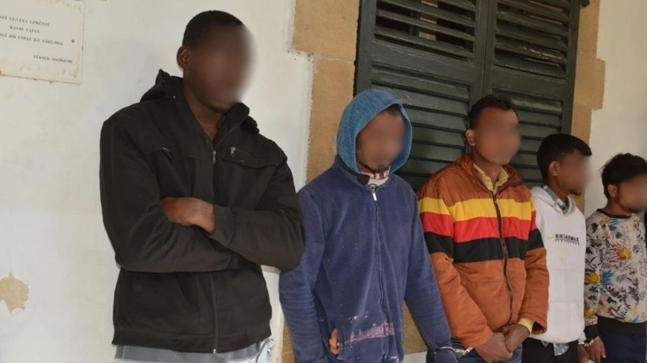 KKTC’de izinsiz ikamet etmek suçundan tutuklanan Nelson Ikechukwu Echeme, Abubakar Sıddık, Md Miraj, Zaib Nasır ve Md Alham mahkemeye çıkarıldı.