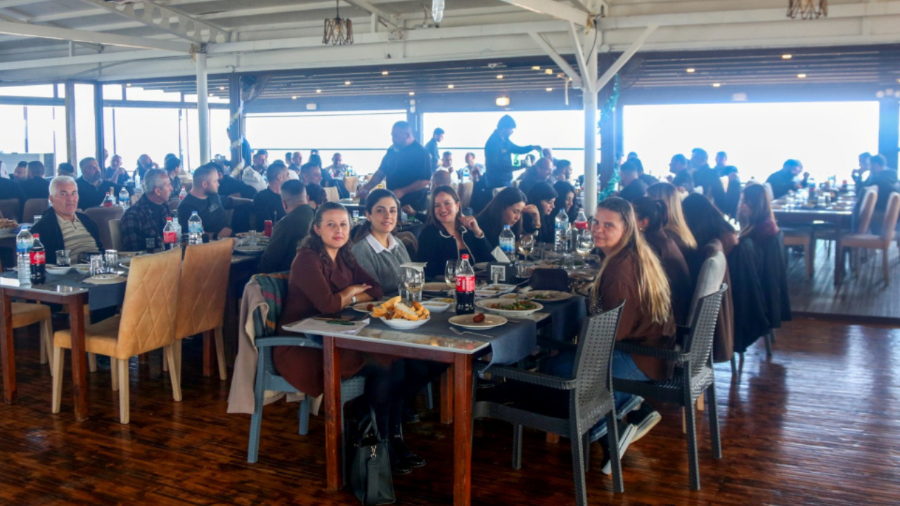 Belediyeden yapılan açıklamaya göre, İskele Belediye Başkanı Hasan Sadıkoğlu ile belediye meclis üyelerinin de katıldığı yemekte, personele yönelik çekiliş düzenlenerek çeşitli hediyeler takdim edildi.