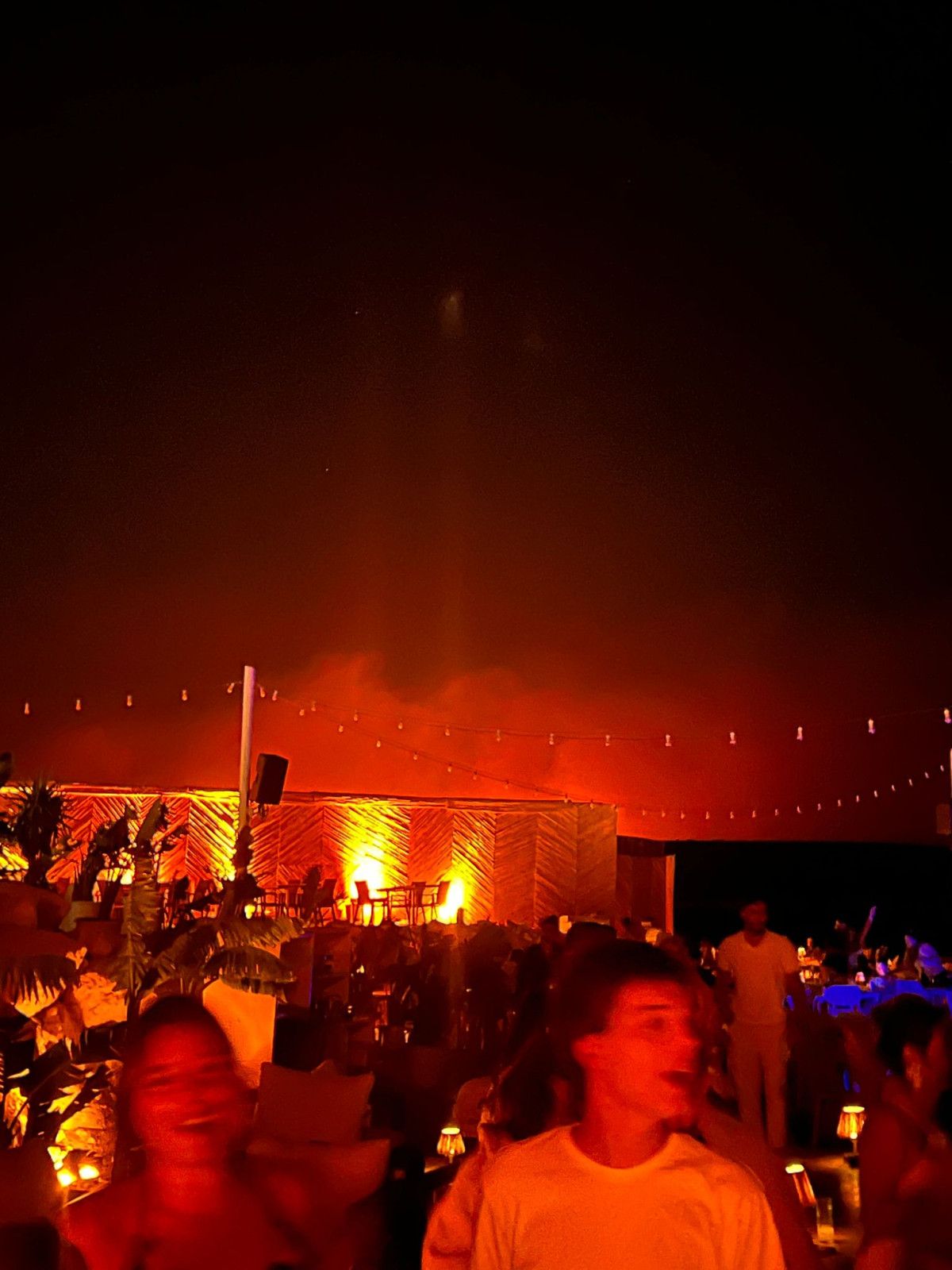 Ünlü gece kulüplerinde eğlence tam gaz devam ederken çekilen fotoğraflarda, arka planda yangının da çıkması dikkat çekti.