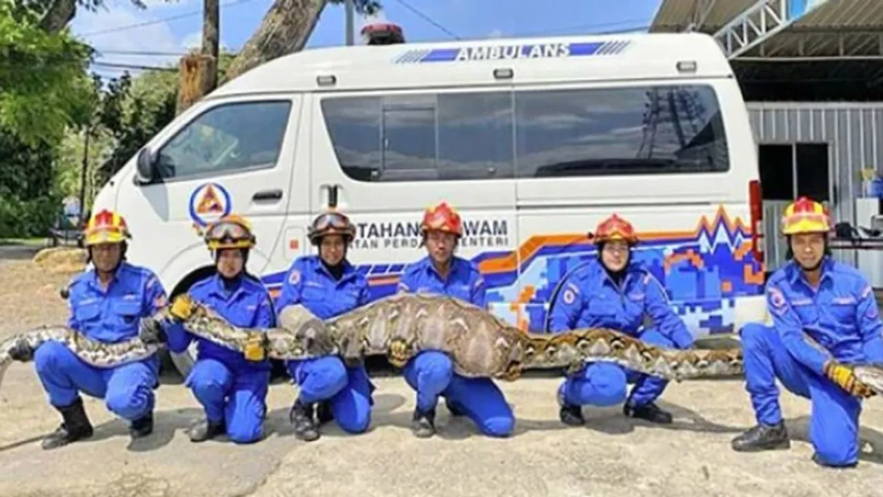 Malezya'da bir keçiyi yutan 7 metre uzunluğundaki piton ekipler tarafından yakalandı. 140 kilo ağırlığındaki piton, sindirme işlemi nedeniyle gafil avlandı.
