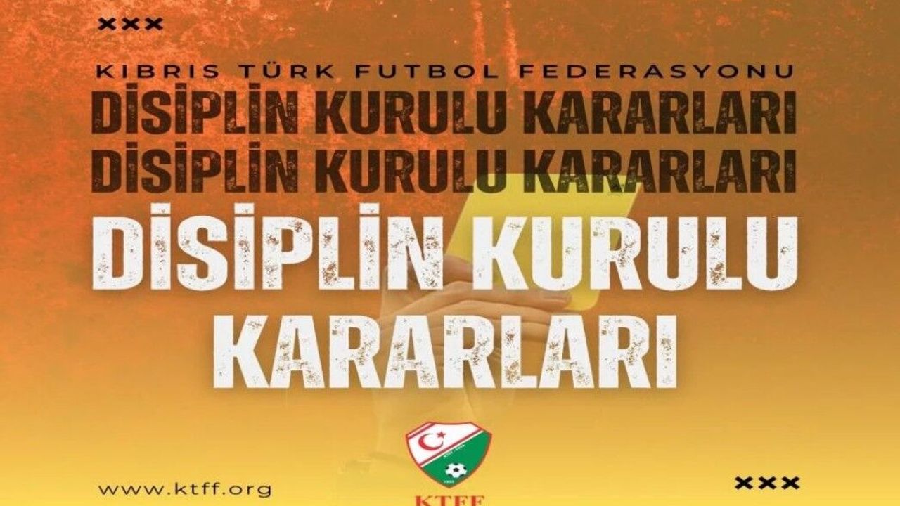Disiplin kararları arasında Alsancak Yeşilova SK ve Mağusa Türk Gücü’ne birer asgari ücret para cezası, Aslanköy GSD’ye 1 maç saha kapatma cezası, kulüp başkanı Gürkan Onalt’a 21 gün hak mahrumiyeti, futbolcu Hüseyin Kasaboğlu’na 4 müsabakadan men cezası ve yönetici Hasan Denizalp’e 14 gün hak mahrumiyeti yer aldı.