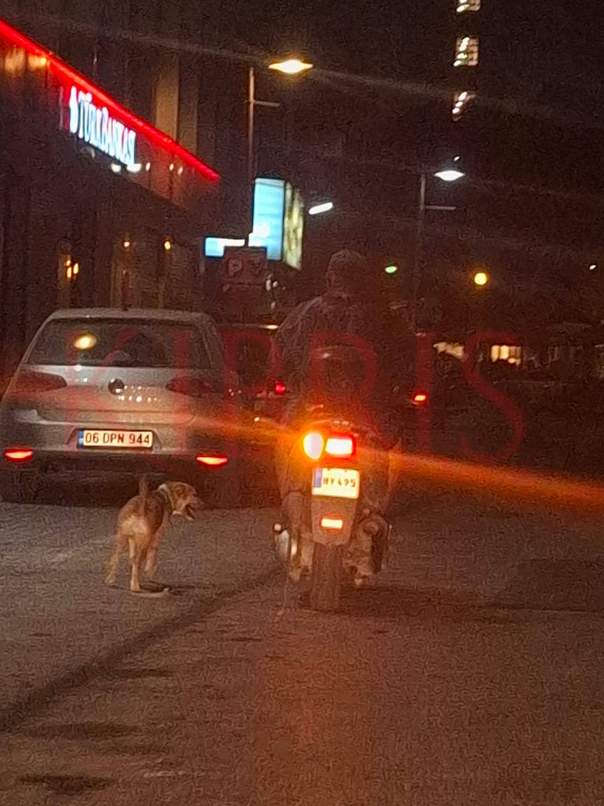 Lefkoşa’da akşam saatlerinde yaşanan olayda, motosikletli bir kişinin köpeği arkasında sürüklemesi kameralara yansıdı.