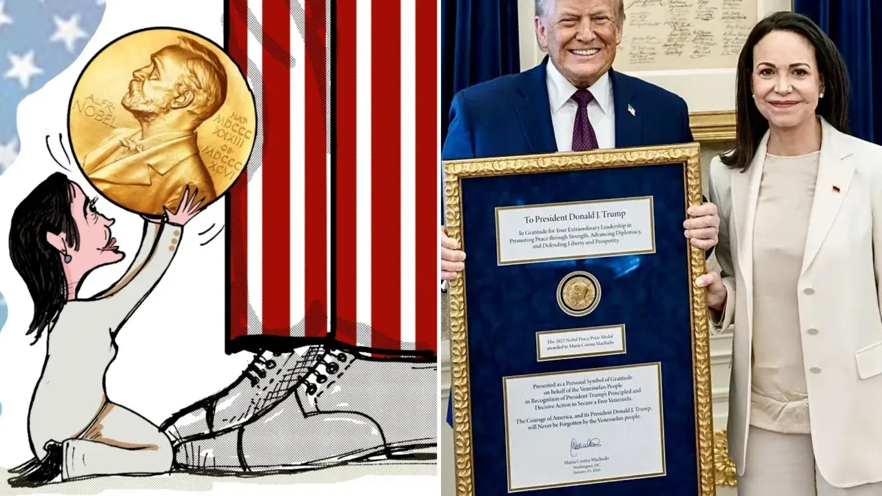 Bu bağlamda, Donald Trump ve Machado’nun Venezuela’ya yönelik askeri saldırılarda oynadıkları roller de hatırlatıldı: biri fiilen saldırıyı gerçekleştiren, diğeri ise buna yalvaran bir figür olarak tasvir edildi.