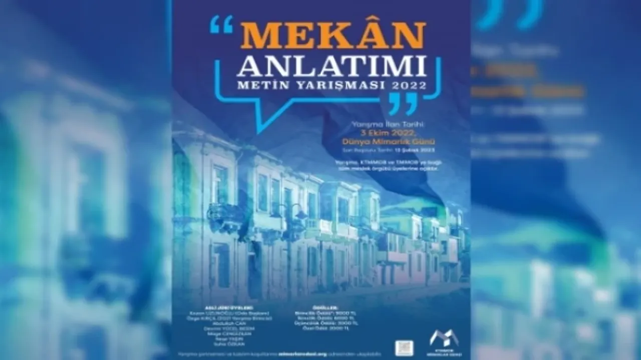 Mimarlar Odası’ndan yapılan açıklamaya göre, yeni ismiyle “Mekân Anlatımı Metin Yarışması - 2022, ilgili bölümlerden mezun ve KTMMOB veya TMMOB içindeki meslek örgütlerinden herhangi birine üye olanlara açık olacak.