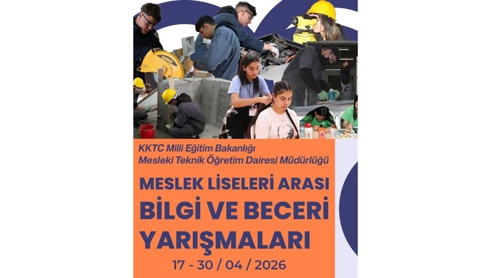27 Nisan 2026: Uluslararası Kıbrıs Üniversitesi sponsorluğunda Güzellik ve Saç Bakım Hizmetleri ile Tarım Teknolojisi alanlarında 62 öğrenci UKÜ kampüsünde yarışacak. Mobilya Teknolojileri Alanı 20 öğrenciyle Dr. Fazıl Küçük Endüstri Meslek Lisesi’nde, Çocuk Gelişimi ve Eğitimi Alanı ise 43 öğrenciyle Lefkoşa Atatürk Kültür Merkezi’nde gerçekleştirilecek.