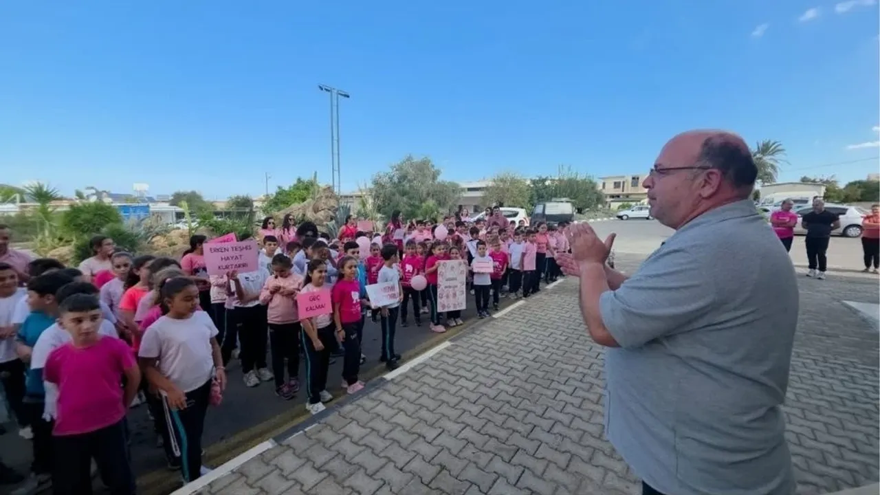 “Annemi Seviyorum”, “Farkında Ol”, “Erken Teşhis Hayat Kurtarır” ve “Geç Kalma” yazılı pankartlarla yürüyen minik öğrenciler, hem köy halkına hem de ziyaret ettikleri Erenköy-Karpaz Belediyesi’ne farkındalık mesajı verdi.