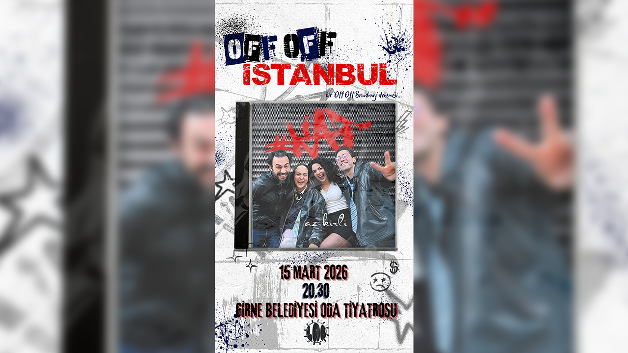 “Off Off İstanbul”, 15 Mart 2026 Pazar günü saat 20.30’da Girne Belediyesi Oda Tiyatrosu’nda sahnelenecek. Oyunun biletleri www.kibrisbiletcim.com adresinden temin edilebiliyor.