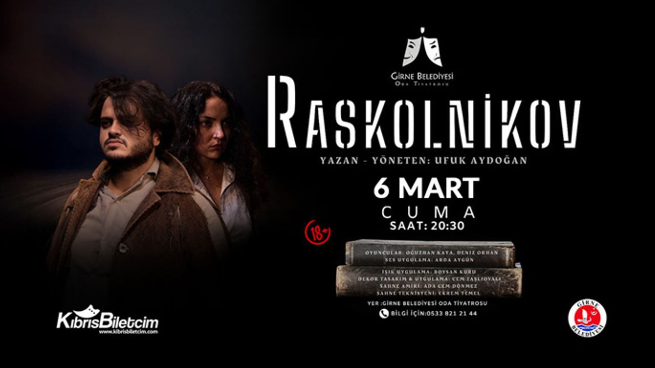Girne Belediyesi Tiyatro Sorumlusu Ufuk Aydoğan, EKTAM emekçileri için dayanışma çağrısı yaptığı yazılı açıklamada, Tiyatrosu’nun “Raskolnikov” oyunun 6 Mart Cuma günü saat 20.30’da EKTAM emekçileri yararına sahneleneceğini duyurdu. Biletlerin www.kibrisbiletcim.com adresinden temin edilebileceği oyun, Girne Belediyesi Oda Tiyatrosu’nda izleyiciyle buluşacak.
