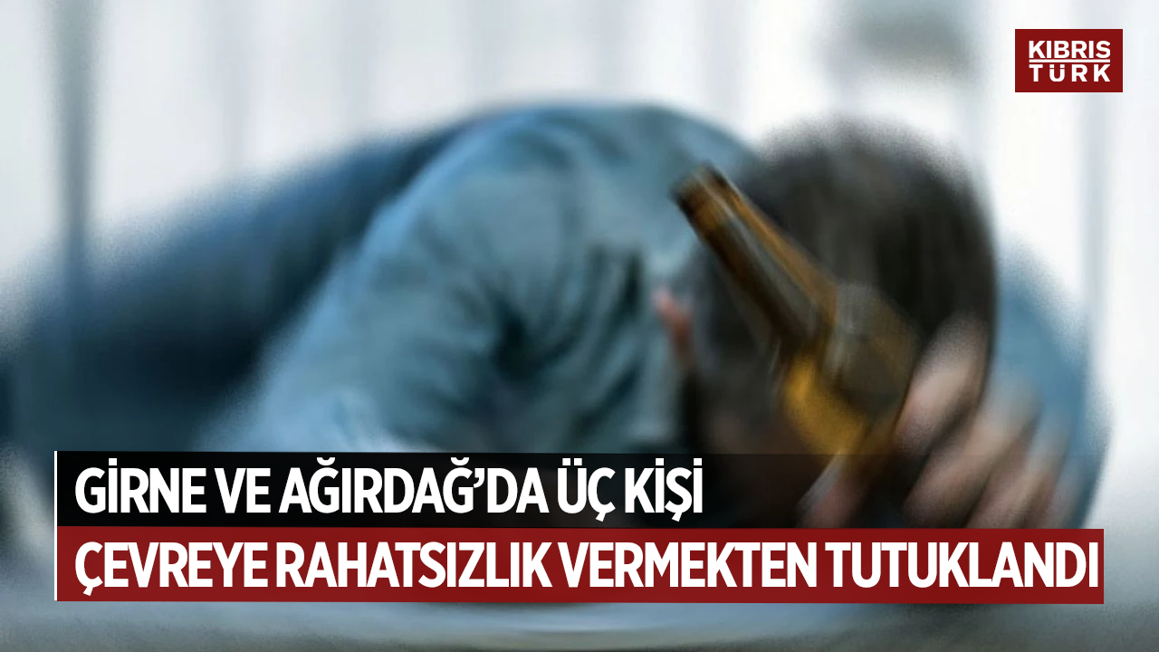 Girne’de Uğur Mumcu Bulvarı’nda, Ö.G.(E-51) 225 miligram alkollü içki tesiri altında Girne Dr. Akçiçek Hastanesi içerisinde ve M.E.Y.(E-28) 266 miligram alkollü içki tesiri altında Ağırdağ’da Çiftçi Sokak’ta, sarhoş oldukları sırada makul mazeretleri olmaksızın yüksek sesle bağırıp çağırmak suretiyle çevreye rahatsızlık vermekten tutuklandılar.