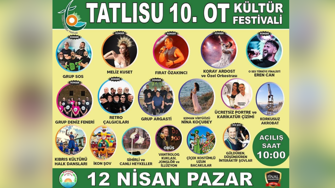 Tatlısu Belediyesi'nin Final Organizasyon katkıları ile düzenleyeceği festival saat 10.00'da başlayacak.