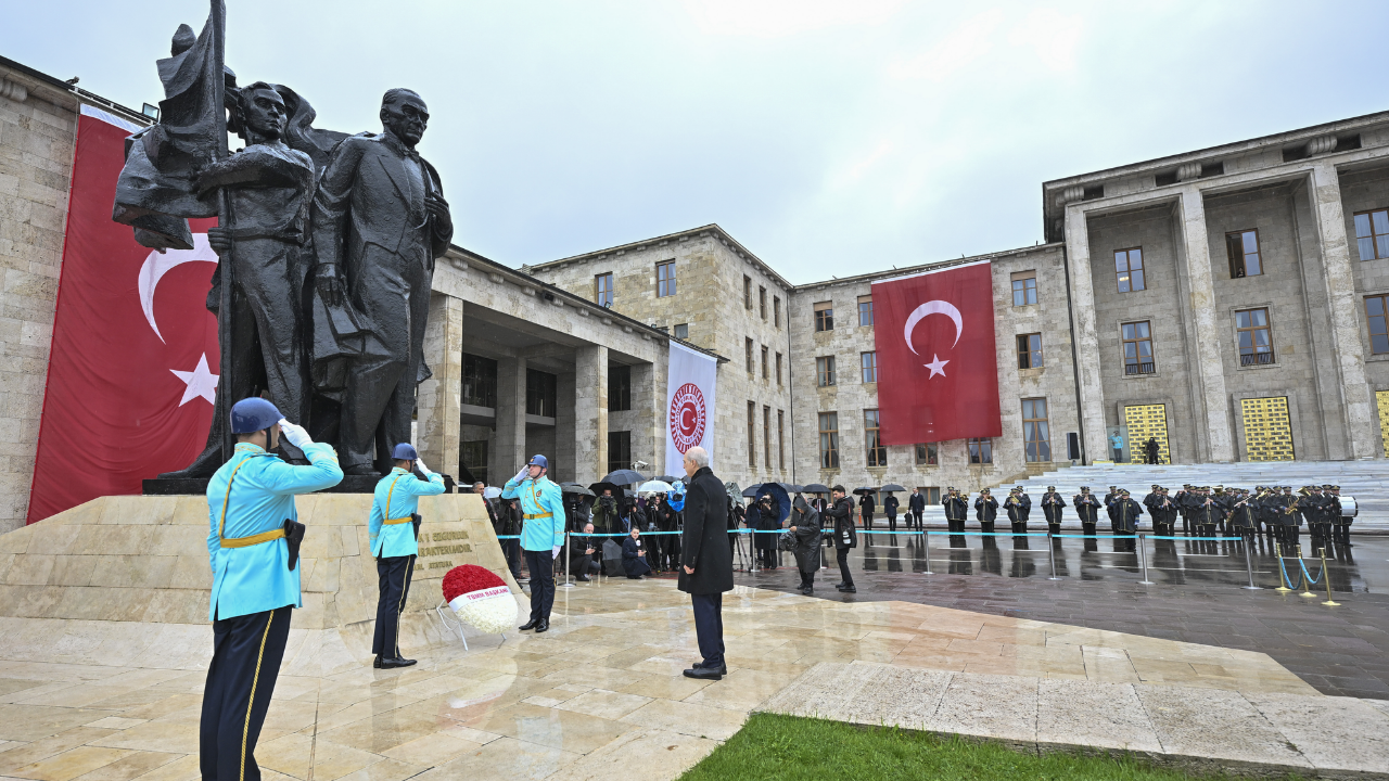 TBMM Başkanı Numan Kurtulmuş'un, Atatürk Anıtı'na kırmızı ve beyaz karanfillerden oluşan çelenk bırakmasının ardından saygı duruşunda bulunuldu, İstiklal Marşı okundu.