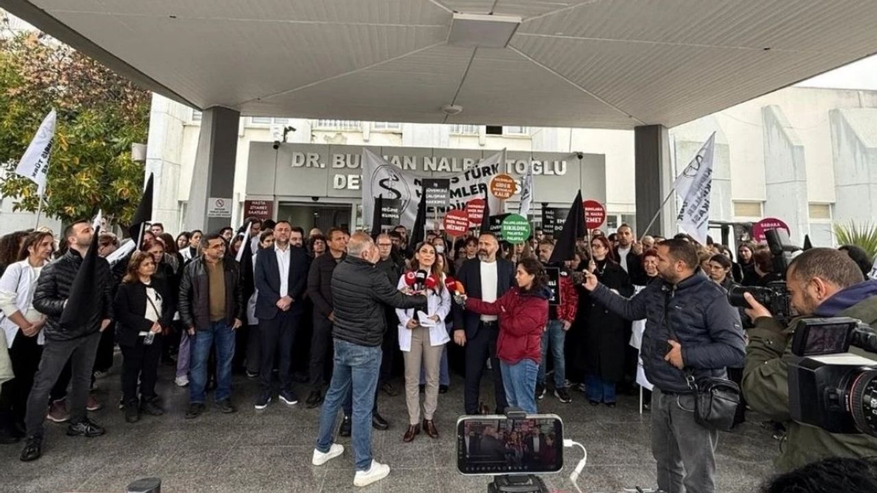 Lefkoşa Burhan Nalbantoğlu Devlet Hastanesi ana binası önünde basın açıklaması gerçekleştiren Tıp-İş’e, Kıbrıs Türk Tabipleri Birliği ile Kıbrıs İşçi ve Emekçi Sendikaları Federasyonu’nun (KİEF) yanı sıra bazı siyasi parti, sendika ve örgütler de destek verdi.