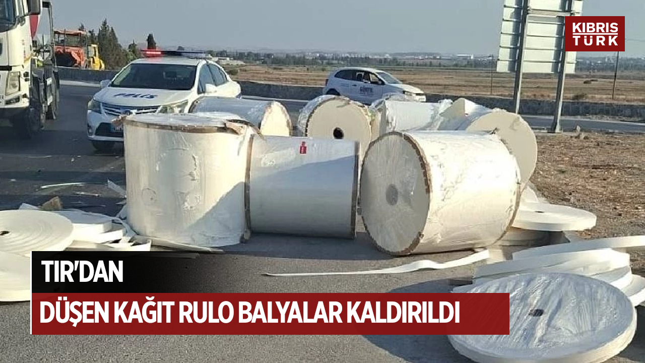 Gazimağusa-Lefkoşa ana yolunun Halkbank Çemberi üzerinde seyir halinde bulunan bir TIR araçta yüklü olarak bulunan kağıt rulo balyalar yol içerisine düştü.