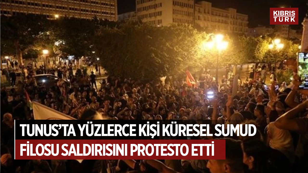Tunus'un başkentinde toplanan yüzlerce kişi, İsrail'in Küresel Sumud Filosu'na saldırısını protesto etti.