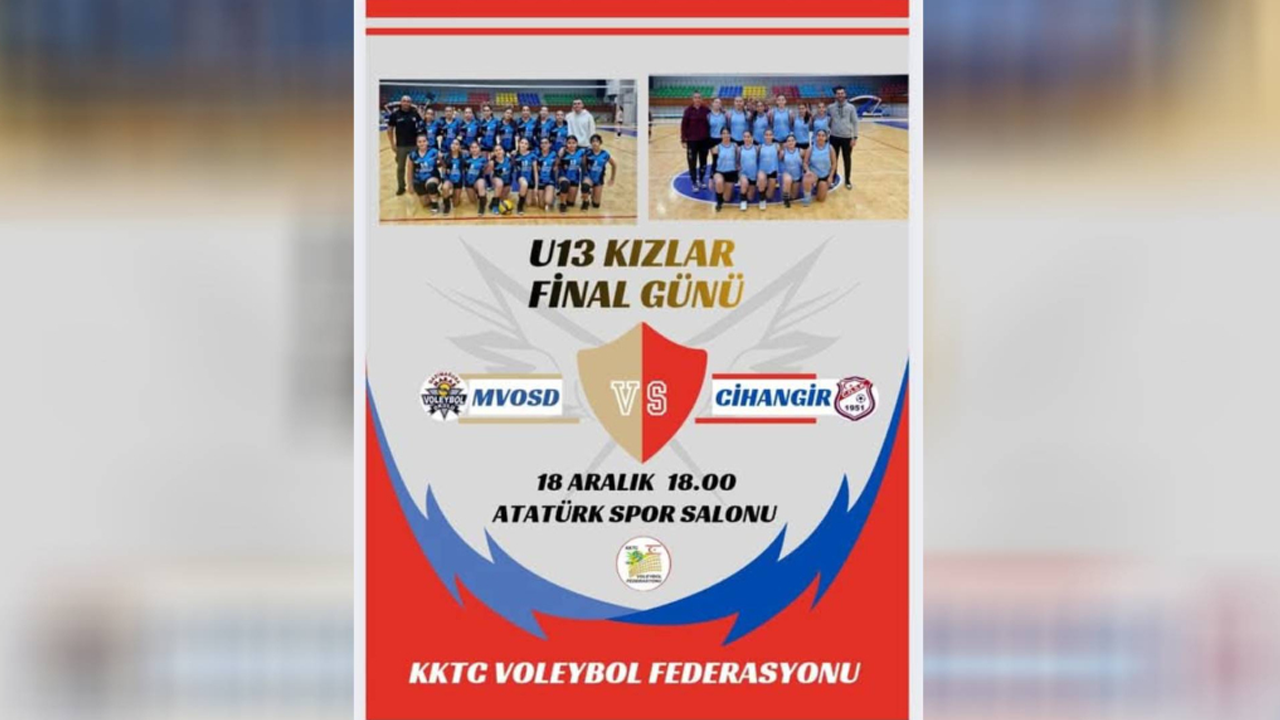 Lefkoşa Atatürk Spor Salonu’nda Saat 18.00 de başlayacak Final karşılaşmasında MVOSD ile Cihangir karşı karşıya gelecek. Maraş Voleybol Okulu Spor Derneği Yarı Finalde Lefkoşa Voleybol Akademisi’ni, Cihangir ise Erenköy Karpaz Belediyesi’ni mağlup ederek finale yükseldi.