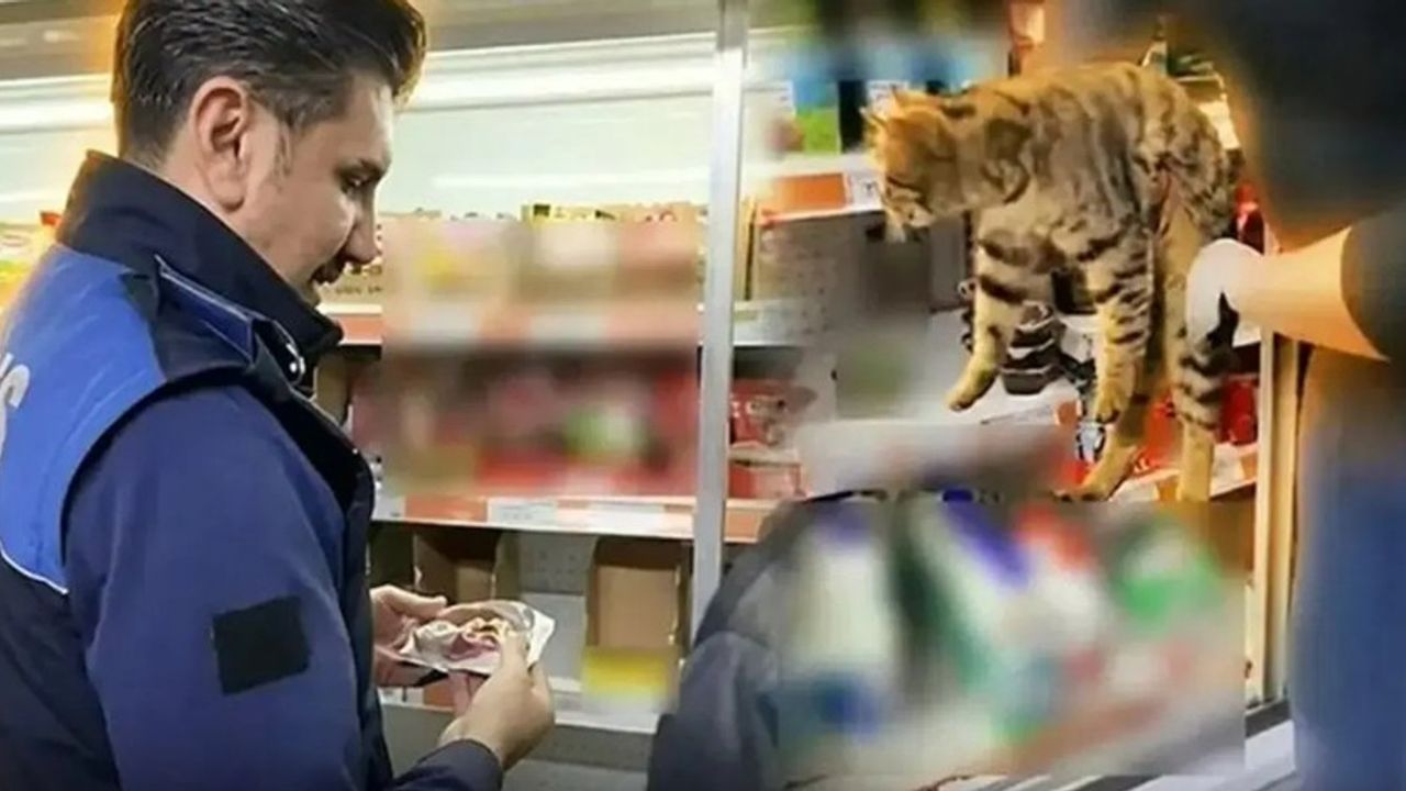 Ayrıca ekipler, markette bulunan dolapta, bir kedinin yediği sucuğun olduğunu fark etti. Dolabın içindeki kediyi gören zabıta ekipleri, kediyi dışarı çıkardı.